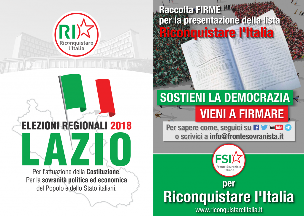 Elezioni regionali Lazio: è ufficialmente iniziata la raccolta firme di Riconquistare l’Italia