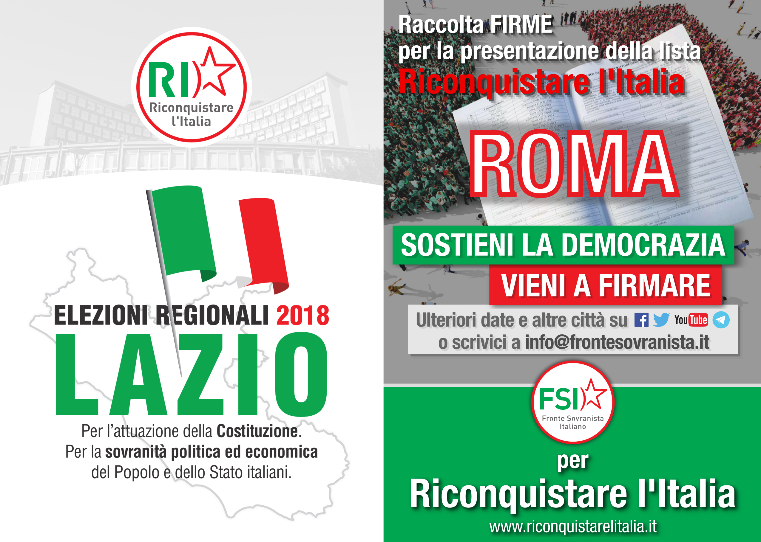 Lazio 2018: procede la raccolta firme per Riconquistare l’Italia